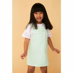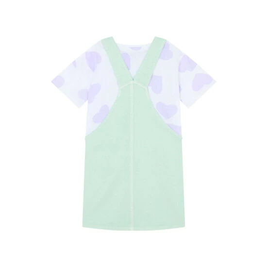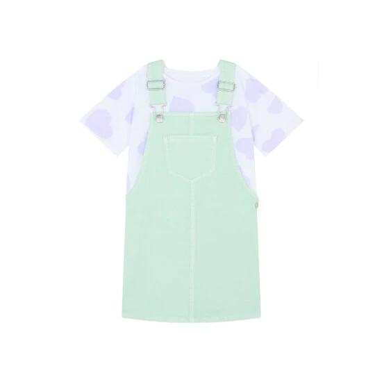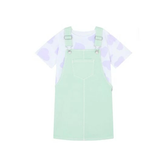 F&F Green Pinny And Aop Heart T-Shirt Set