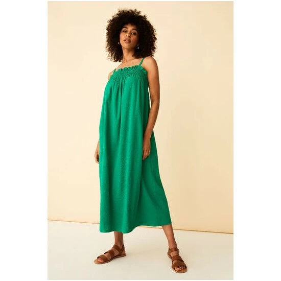 This bright midi dress from F&F is perfect for warmer days. Made in a cotton blend and designed in a floaty silhouette to keep you feeling cool and comfortable. With a square frill detail neckline and adjustable straps.
