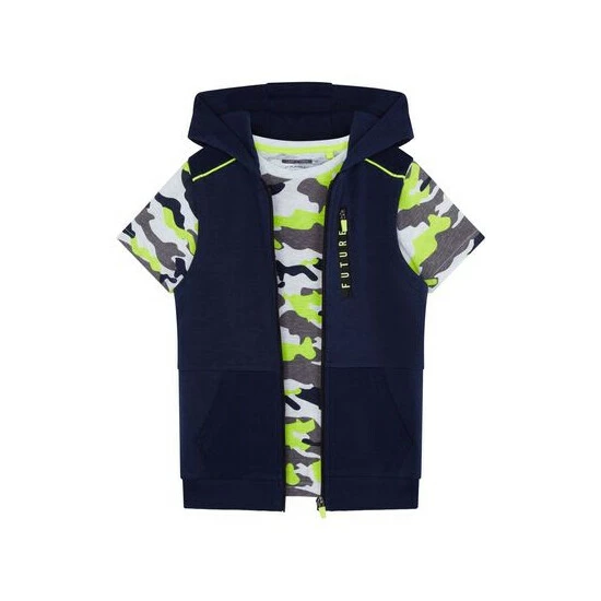 The coolest gilet is in town with the coolest camo T-shirt and pair of shorts! With these three on, the breathability and comfort will your kid the coolest one on the block.