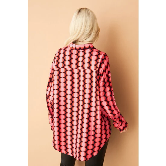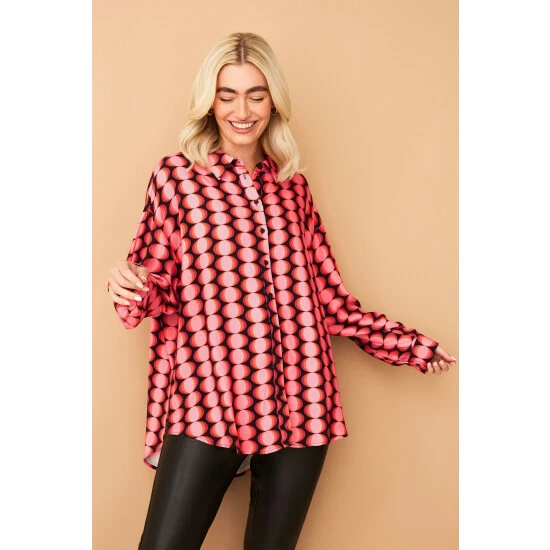 Add style to your wardrobe with this pink shirt from F&F. Made from lightweight viscose in a bright geometric print with front button fastening, collared neckline and long sleeves.