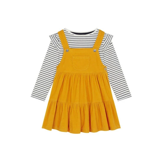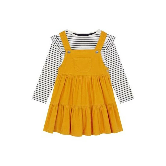 F&F Yellow Ochre Cord Tiered Pinny Dress
